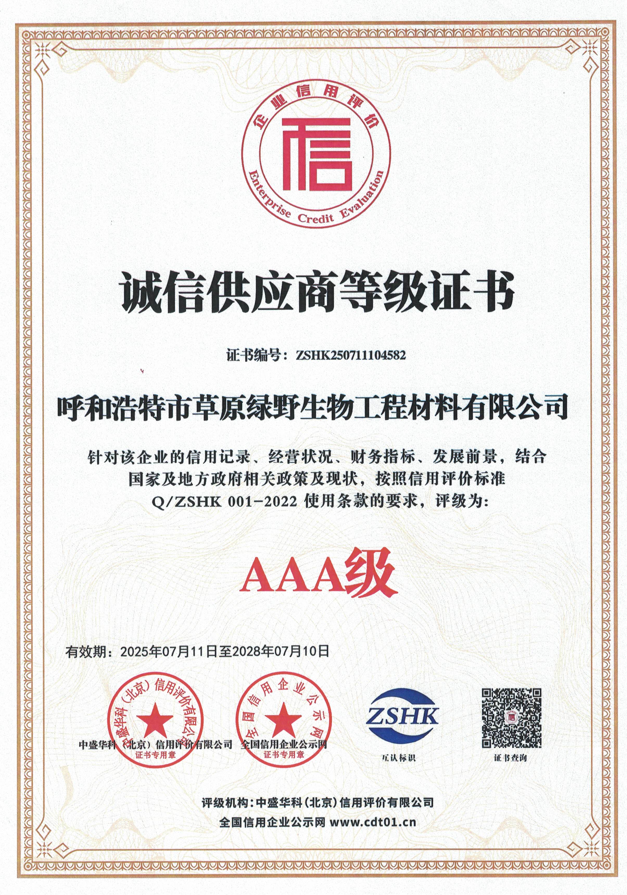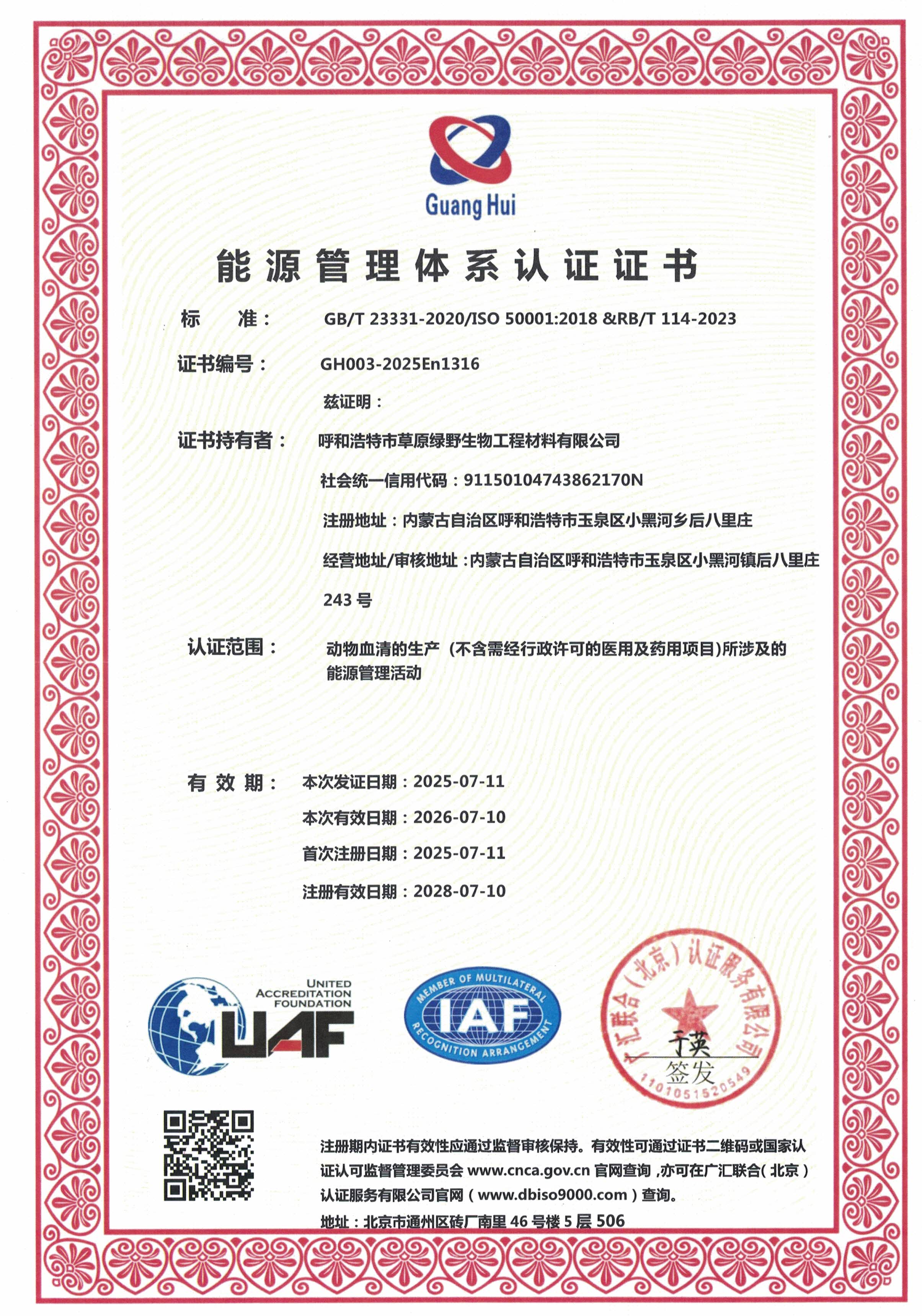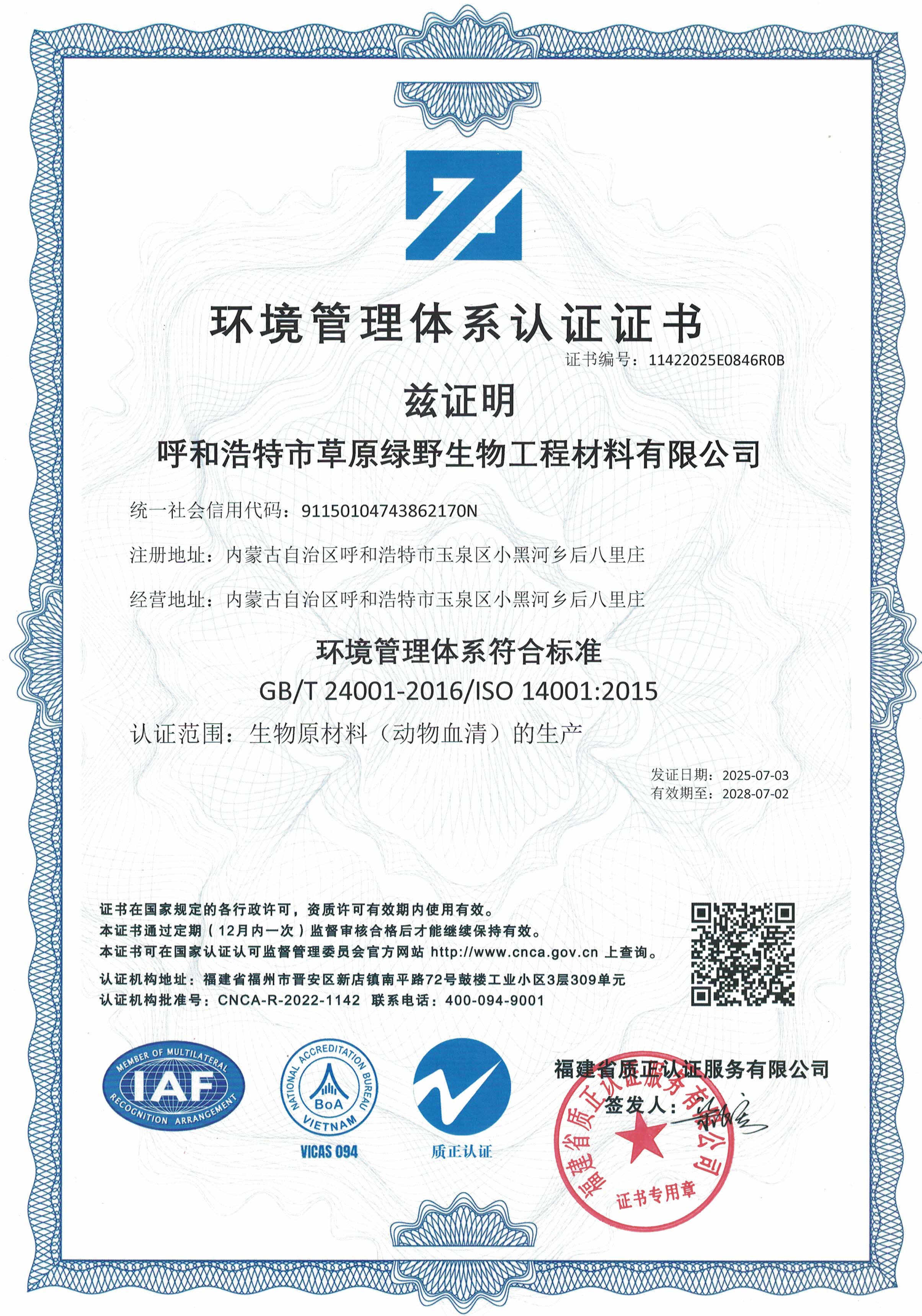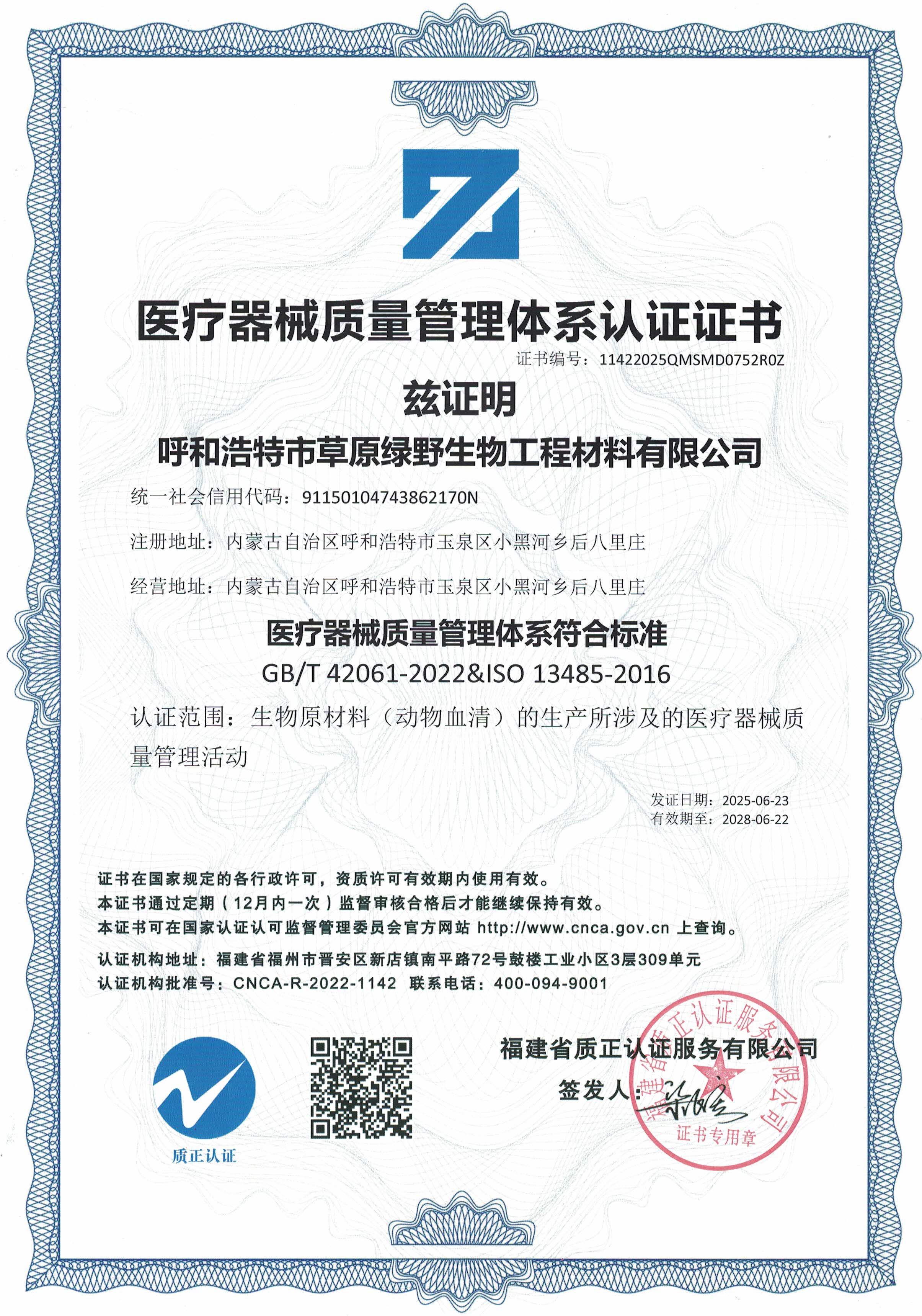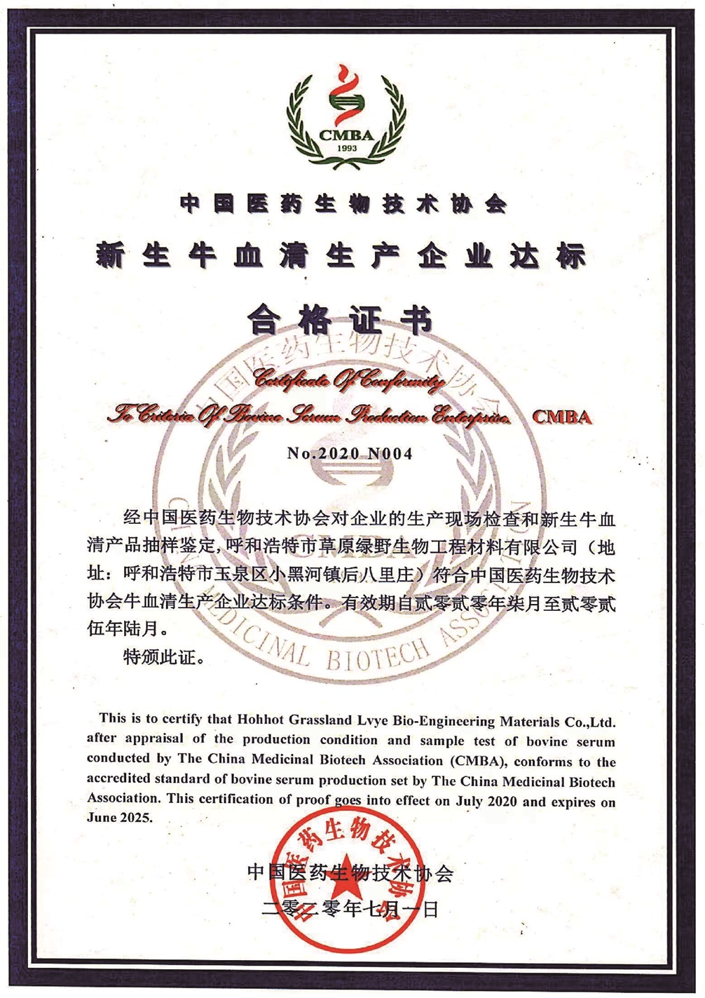 公司至今已多次通過中國醫(yī)藥生物技術(shù)協(xié)會《牛血清生產(chǎn)企業(yè)達標》認證、《牛血清生產(chǎn)質(zhì)量達標企業(yè)》認證。ISO9001質(zhì)量管理體系認證、ISO45001職業(yè)健康安全管理體系認證、ISO14001環(huán)境管理體系認證、ISO13485醫(yī)療器械質(zhì)量管理體系認證、ISO50001能源管理體系認證、GB/T29490知識產(chǎn)權(quán)合規(guī)管理體系認證、AAA級信用企業(yè)認證、A級納稅單位評審等。